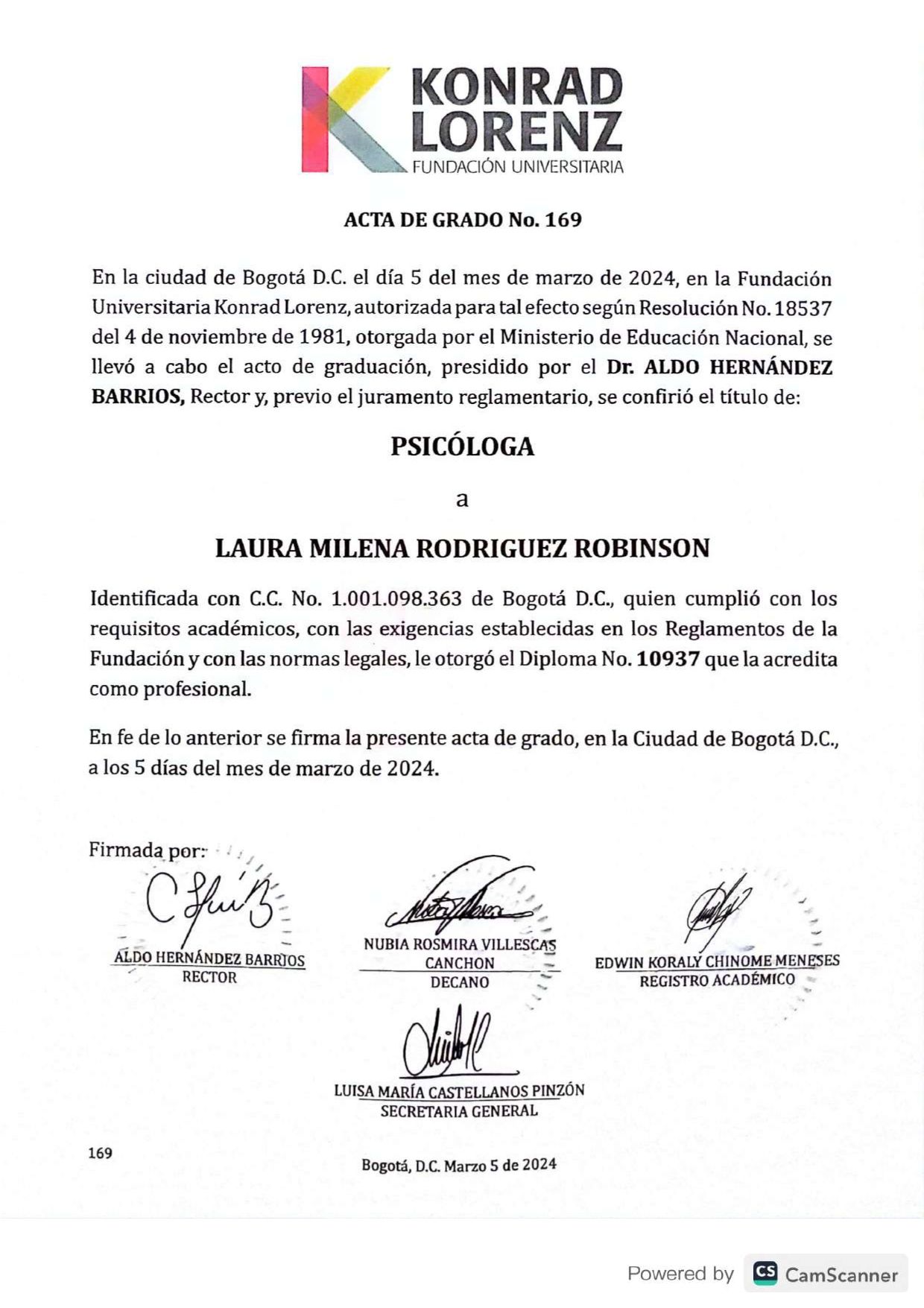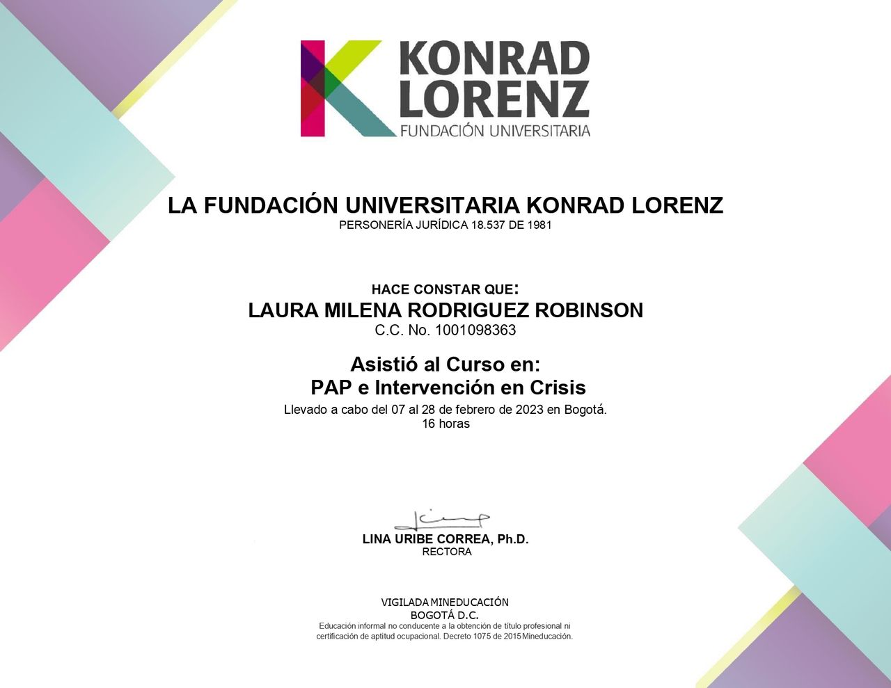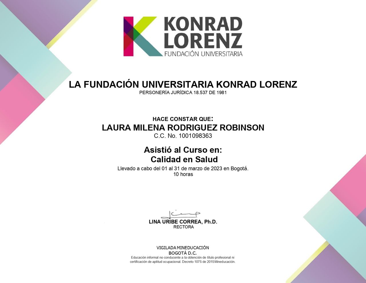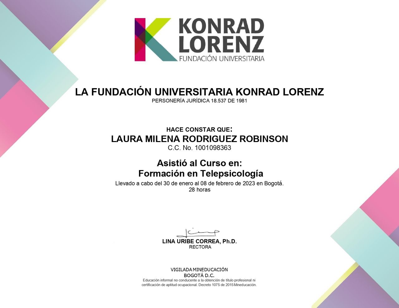 - Universidad Konrad Lorenz - Pregrado (Bogotá, 2024)